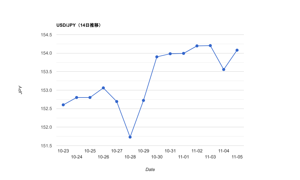 終値(USD/JPY):153.557円 前日比:-64.7pips(-0.42%)