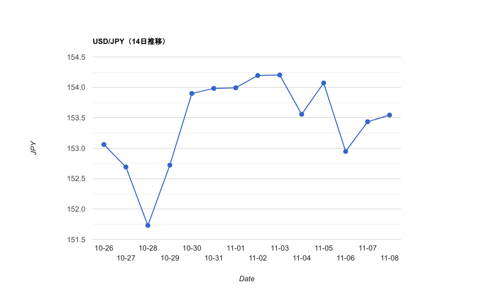 終値(USD/JPY):153.435円 前日比:+48.7pips(0.318%)