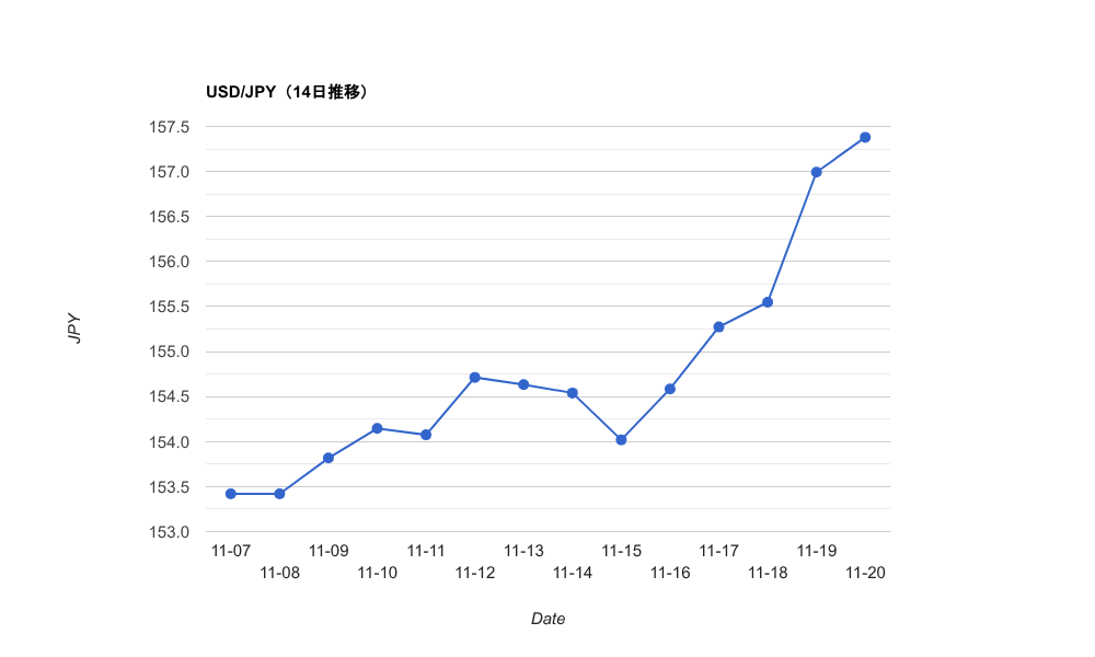 終値(USD/JPY):156.992円 前日比:+144.4pips(0.928%)