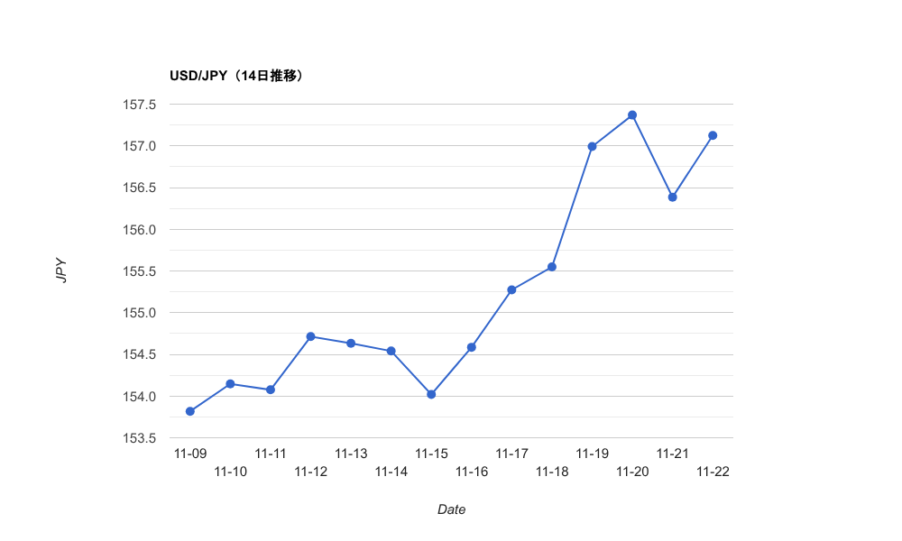 終値(USD/JPY):156.385円 前日比:-98.4pips(-0.625%)