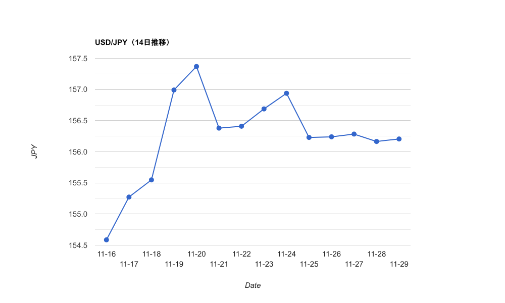 終値(USD/JPY):156.165円 前日比:-11.9pips(-0.076%)